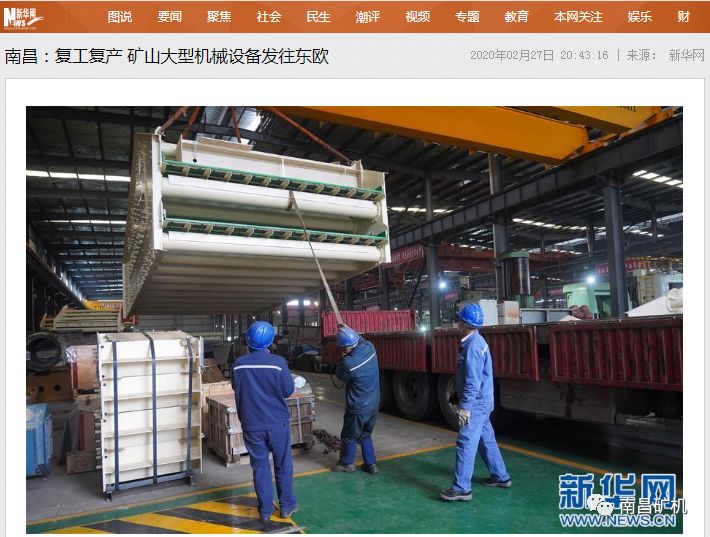 2020年2月27日,新華社記者到訪南昌礦山機(jī)械有限公司(以下簡稱“南昌礦機(jī)”),并對其通過“抗疫”與“生產(chǎn)”兩手抓,從而快速實現(xiàn)首批海外訂單交付做了報道。南昌礦機(jī)生產(chǎn)的3臺ZKR直線振動篩及1臺BS系列香蕉篩,已于當(dāng)日通過生產(chǎn)技術(shù)及質(zhì)檢部門對設(shè)備出廠前的認(rèn)真仔細(xì)檢查工作,并順利完成裝車,啟程發(fā)往塞爾維亞交付客戶。
