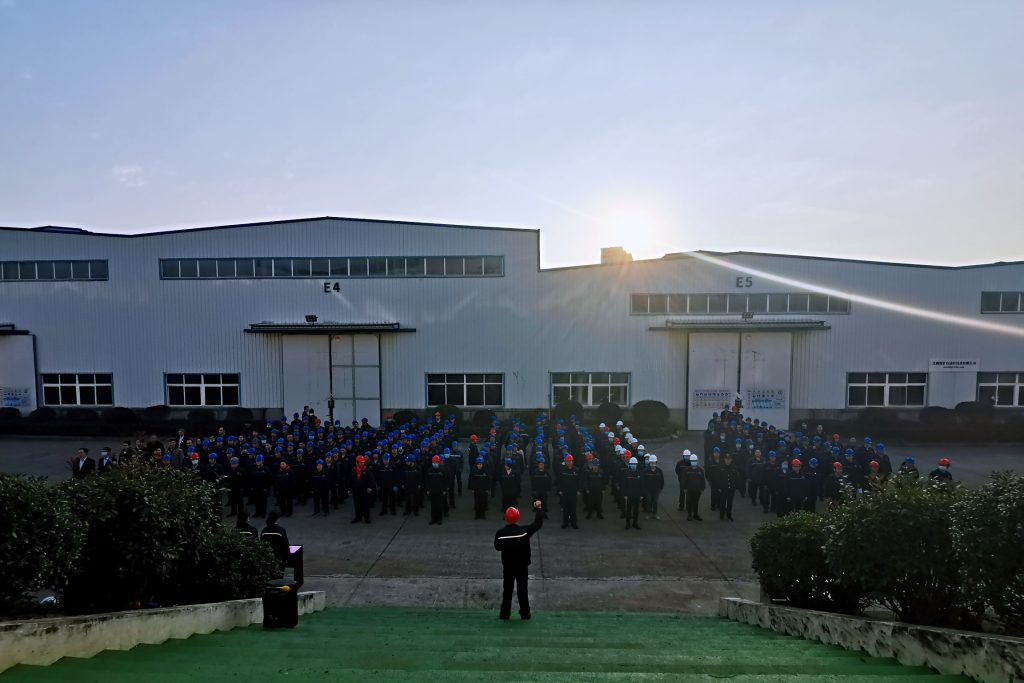 ? ? 當天上午8點08分,第一批回家的員工穿戴整齊、精神抖擻,齊聚車間門口,在主持人的開場語中,開工儀式正式拉開了序幕。
