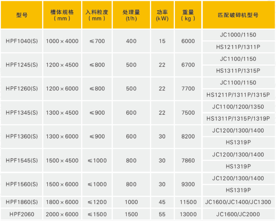 HPF重型振動給料機,適用于向初級顎式破碎機、初級反擊破碎機和初級錘式破碎機等進行給料,廣泛應用于石料、建材和冶金礦山行業。HPF型給料機高度較低, 布置空間小, 其最大處理量達1500TPH,最大給料粒度達1.5m,標準給料斗容量25~45m ;
